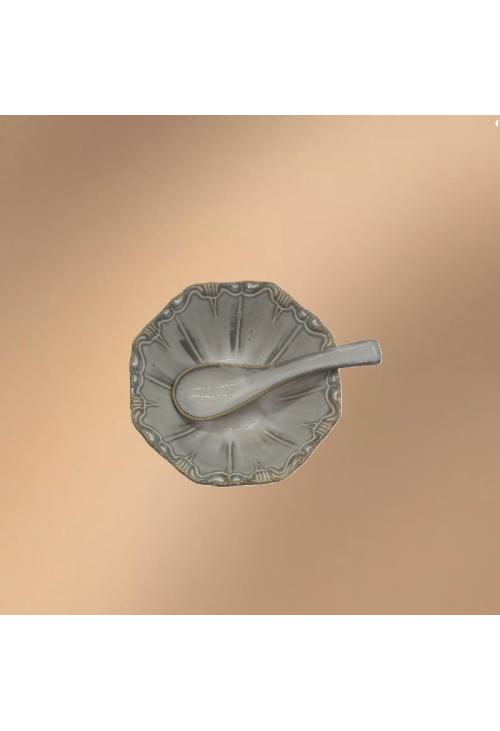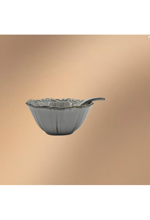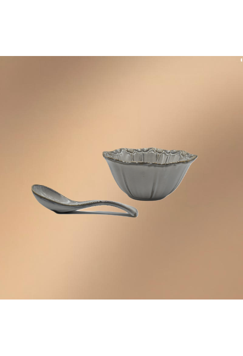 Gray Porcelain Bowl,Embossed Soup Bowl With Spoon