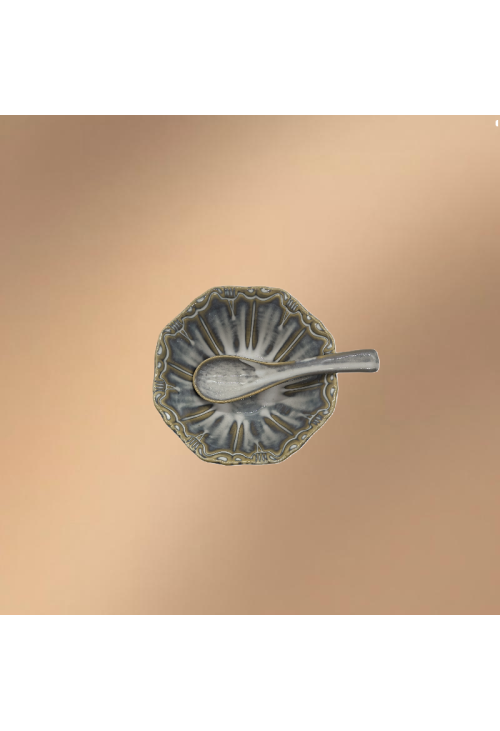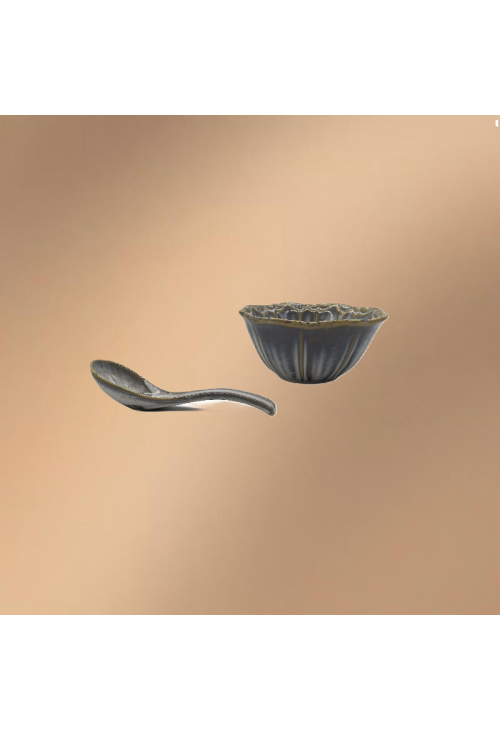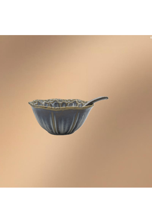 Blue Porcelain Bowl,Embossed Soup Bowl With Spoon